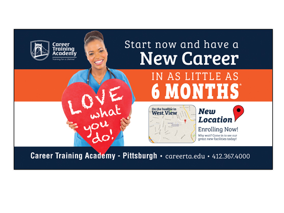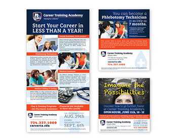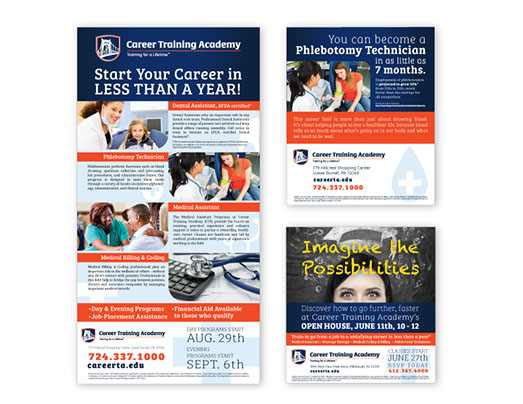 Career Training Academy digital and print ads.