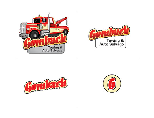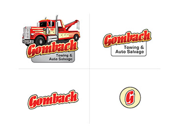 Logo for Gomcach Towing and Auto Salvage includes custom truck illustration and responsive design options.