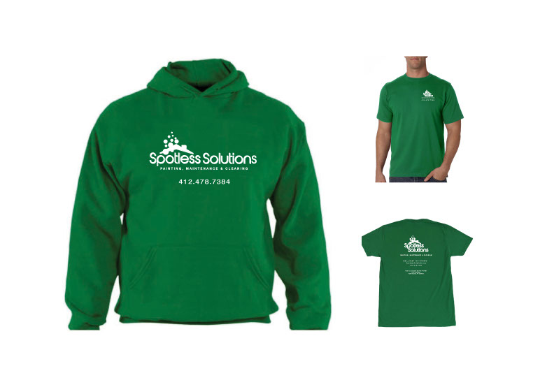Spotless Solutions branded employee shirts.