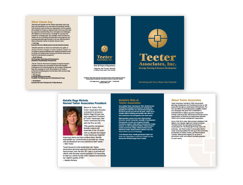 New President tri-fold announcement for Teeter Associates strategic planning services.