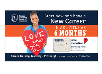 Career Training Academy digital and print ads.