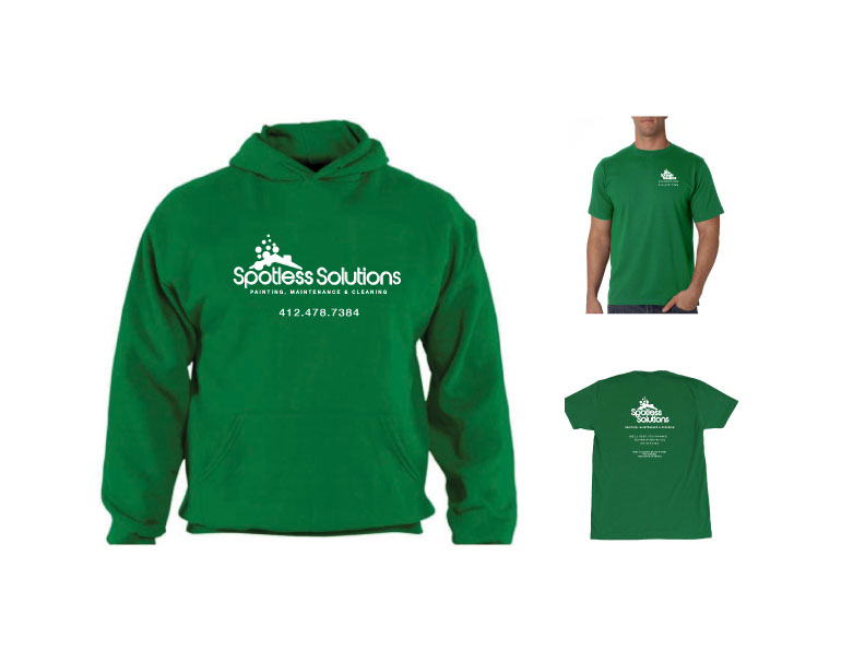 Spotless Solutions branded employee shirts.