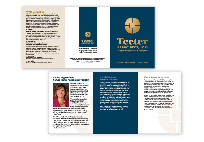 New President tri-fold announcement for Teeter Associates strategic planning services.